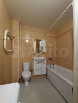 Кухня оснащена всем необходимым: современными шкафами, холодильником и микроволновой печью. Есть вся необходимая новая посуда. Санузел совмещенный, оформлен в светлых тонах и оснащен современной сантехникой.