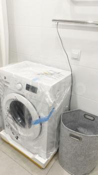 холодильник, плита, микроволновка, стиральная машина, телевизор.
