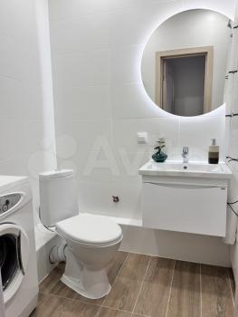 - большое зеркало с подсветкой в ванной комнате