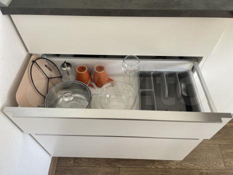 В квартире имеется все необходимое для проживания - мебель, телевизор, холодильник, электроплита, стиральная машина, микроволновка, электрочайник, вентилятор, сушилка для белья.