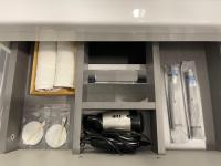 ванная комната с душевой кабиной, стиральная машина, утюг и гладильная доска